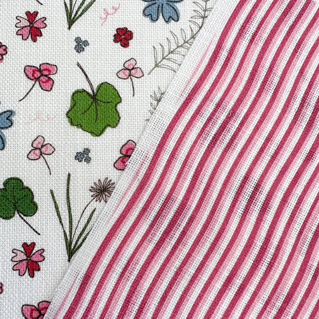 All designs in this collection are available in an off-white 100% Linen base cloth, with select designs available on a 100% linen Oatmeal cloth.