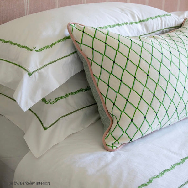 All designs in this collection are available in an off-white 100% Linen base cloth, with select designs available on a 100% linen Oatmeal cloth.