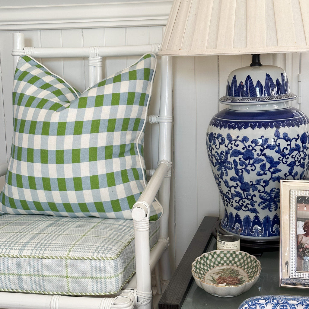 Our 'Country House' & 'Summer House' Collections are printed on our Linen/Viscose base cloth. It's the perfect fabric for cushions, curtains & upholstery. It can also be used for lampshades, but please be aware that due to it's looser weave, more light shines through when your light is on.