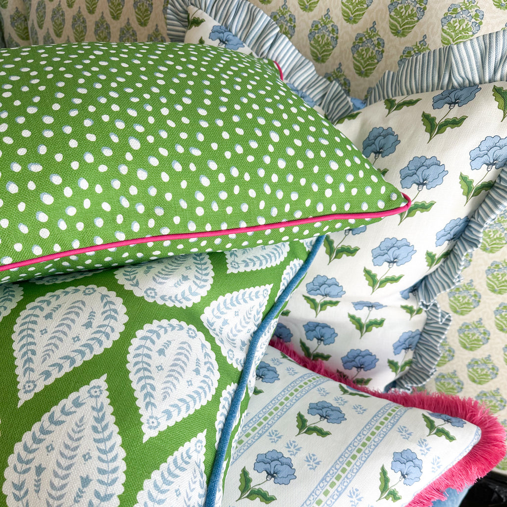 Our 'Country House' & 'Summer House' Collections are printed on our Linen/Viscose base cloth. It's the perfect fabric for cushions, curtains & upholstery. It can also be used for lampshades, but please be aware that due to it's looser weave, more light shines through when your light is on.
